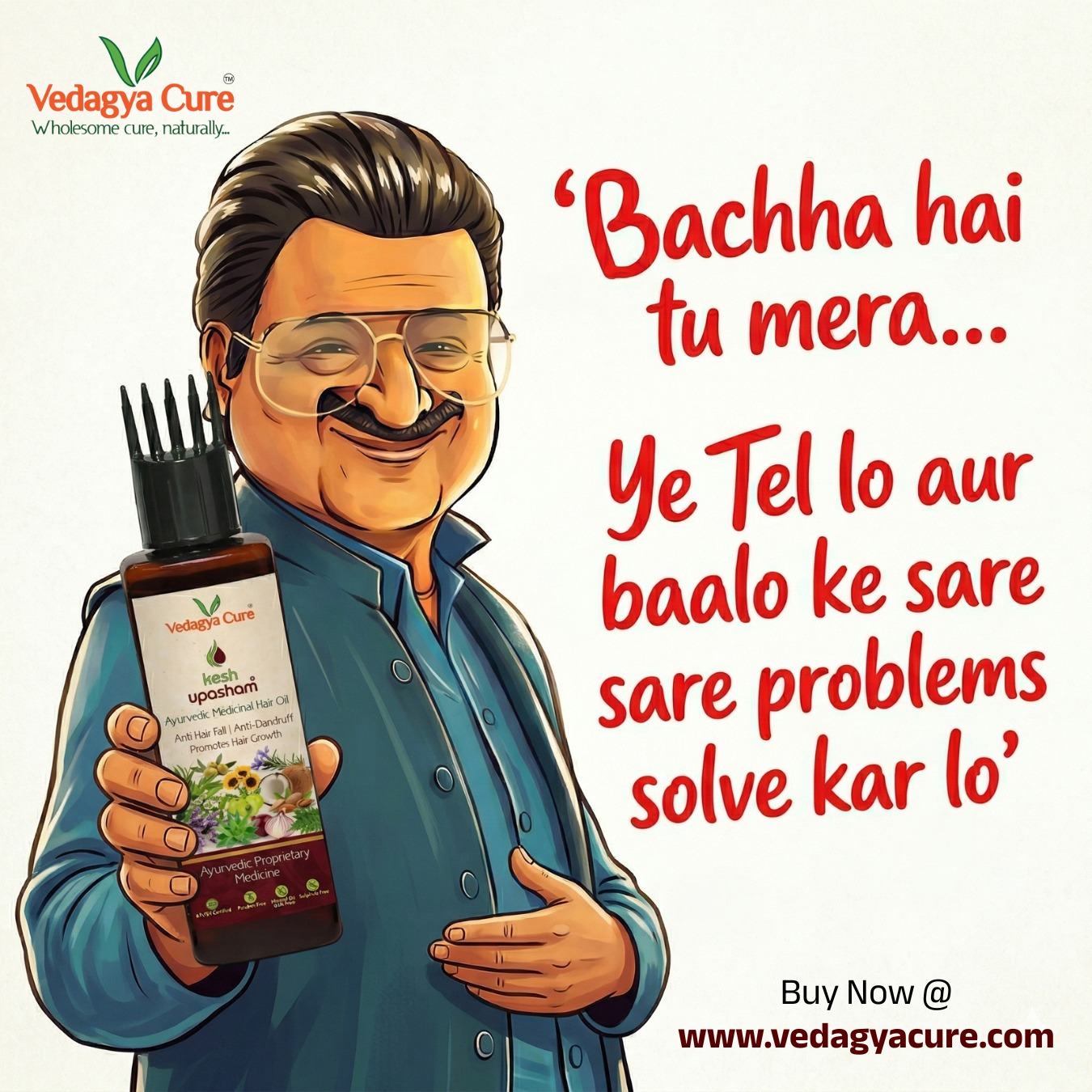 Very good hair oil which helped me stop my rapid hairfall and also enhanced my hair growth significantly. Thank you Vedagya Cure for Kesh Upasham hair oil.