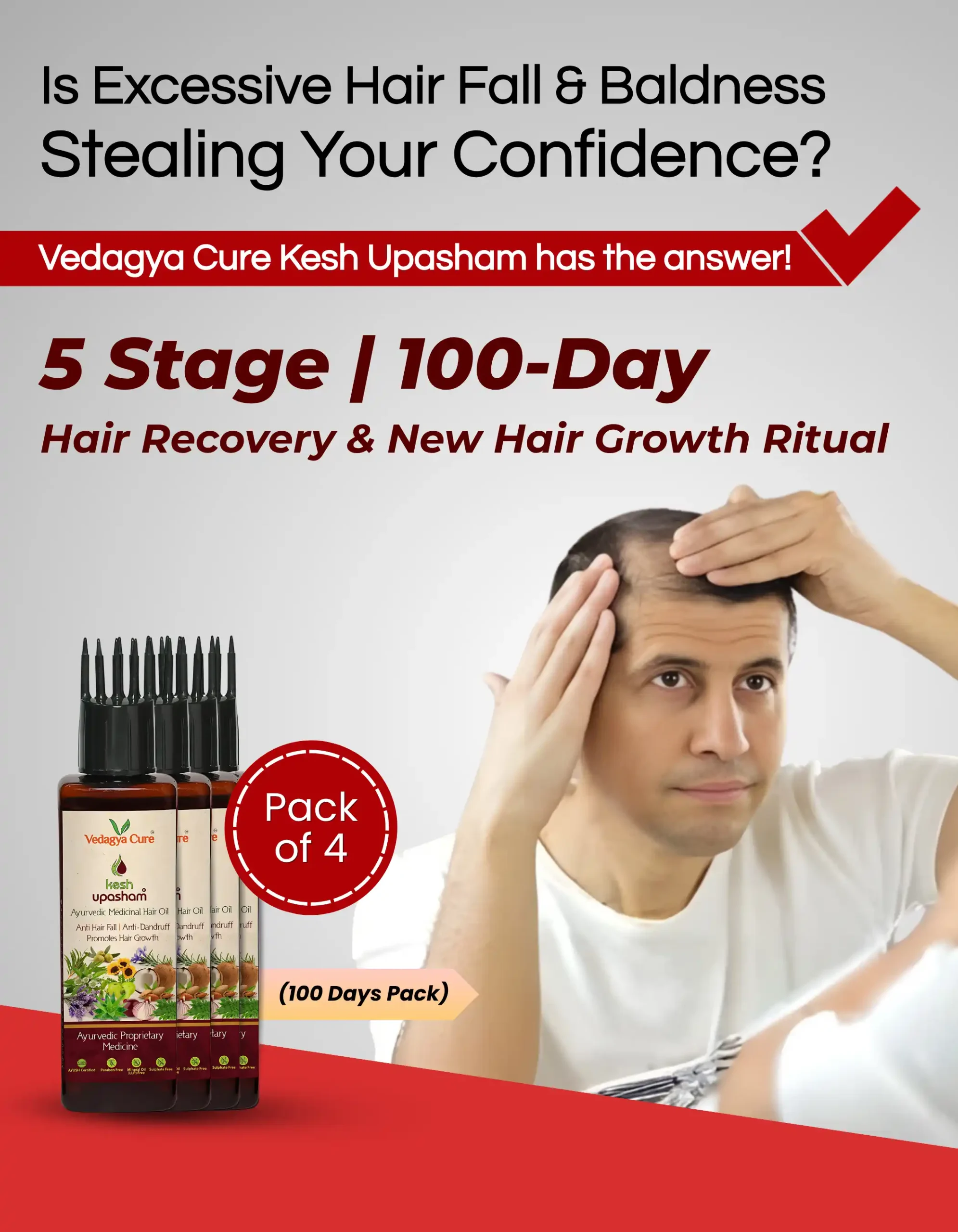 - Pack of 4 Kesh Upasham hair oil to be used for minimum 100 days for best results